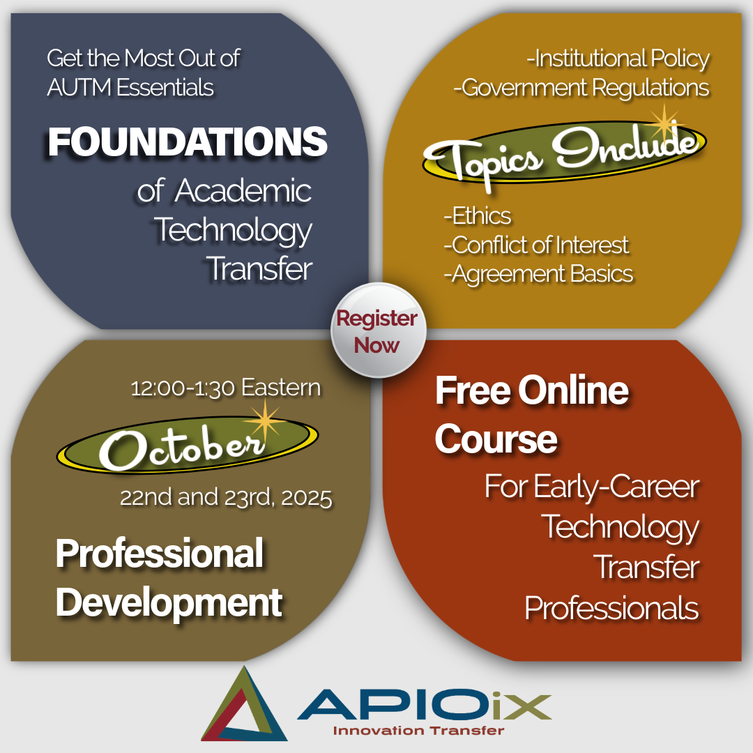Join us for this two-day course designed for early-career technology transfer professionals, offered via Zoom.